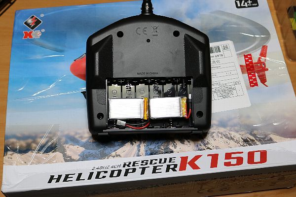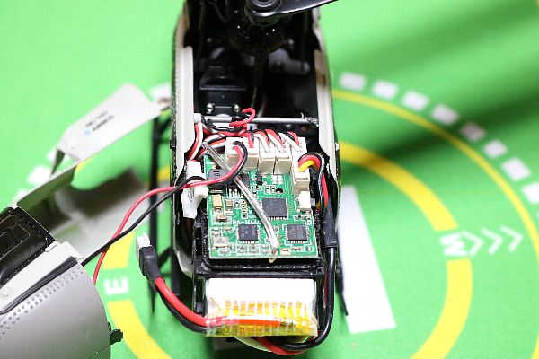 ![]() バッテリーはまさかの送信機から発見。ユーチューブの例では本体に初めから装着されていますね。 |