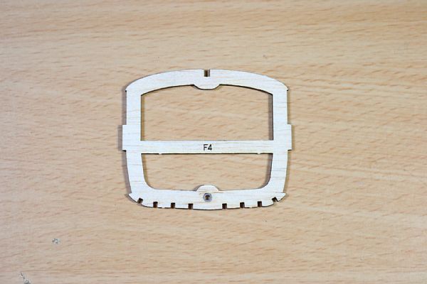 ![]() 組立前に、胴枠F4にダウエル受けの補強として3mmノイズレスパイプを埋め込みました。なおダウエルは2mmカーボン棒です。 |