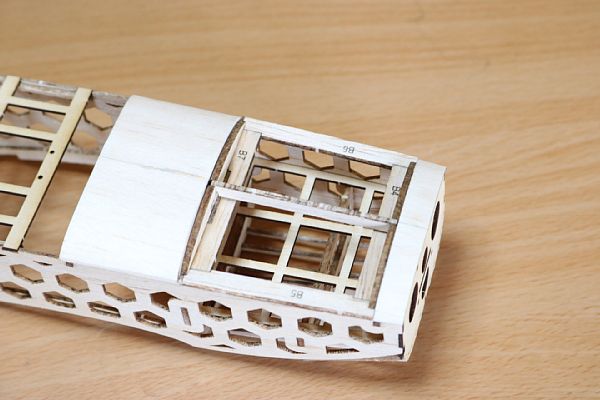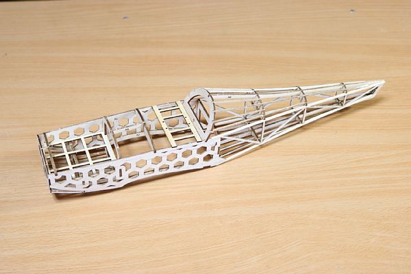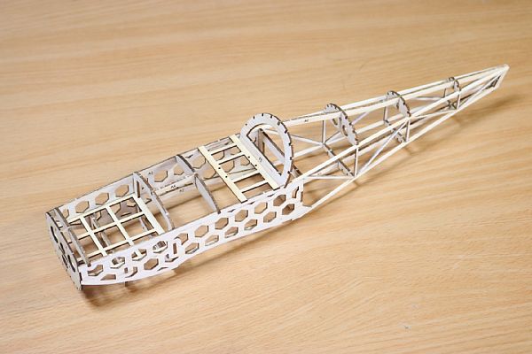 ![]() 胴体下面及び後ろにストリンガーを接着しました。かなりガッチリしてきます。 |