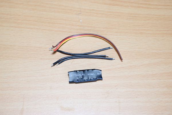 | フィルム貼りは省略します。 完成してメカ搭載してみましたが、いつものごとく100gを切るのは容易ではありませんでした。 軽量化は、 (1)アンプのモーターリードを削除(モーターを直接半田付け)、サーボリードを10cm短く、ケースのシュリンクチューブを薄いものに変更で、合計2.7g軽量化。 (2)受信機のアンテナを8cm短くして0.4g軽量化。 |