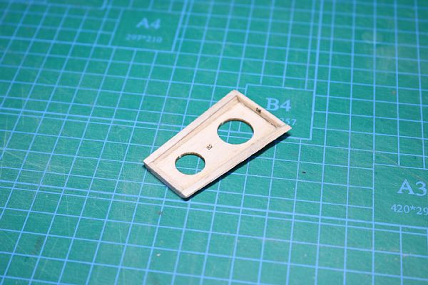 |  ところが設計ミスが発覚! 左側の丸穴はカンザシの穴ですが、枠と干渉しています。設計時に枠とかんざしを間違えたようです。 |  そのほかに右側の枠の設計も間違えていました。胴体側と高さが合っていません。これはサンディングしました。 |