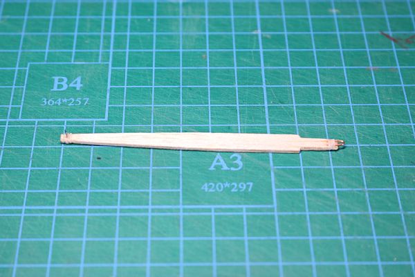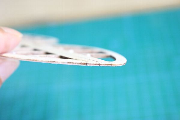 |  きれいな翼型になるように前縁や後縁を整形しました。 |  尾翼も後縁を薄く、前縁は丸くなるように整形しました。 |