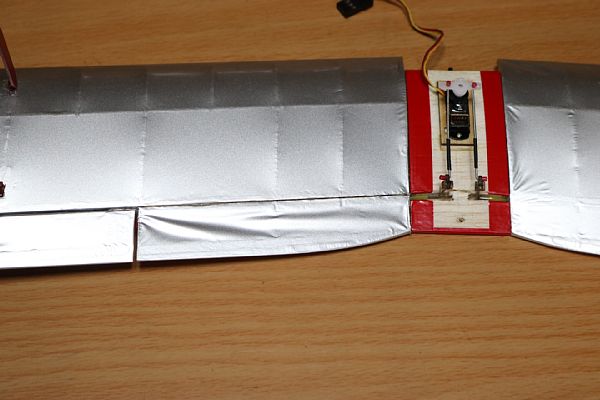![]() エルロンサーボベッドを接着しました。2mmのスクラップバルサで浮かせています。 |